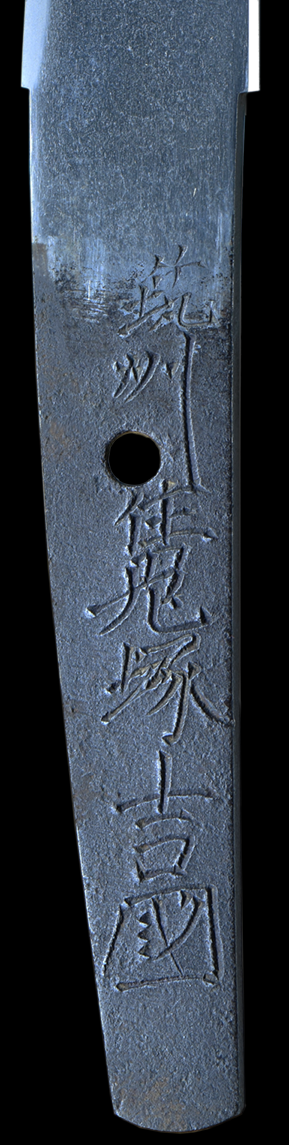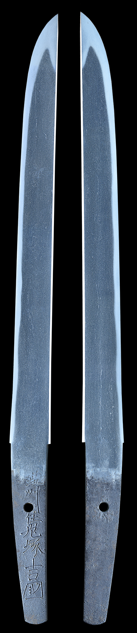 This tantō is signed Onizuka Yoshikuni (鬼塚吉國), a regional swordsmith working in Chikuzen Province (Kyūshū). The blade dates to the late Muromachi to early Edo period and represents the provincial Kyūshū tradition, which is known for producing practical, well-forged blades with strong regional character. Signed examples by Onizuka Yoshikuni are comparatively uncommon.