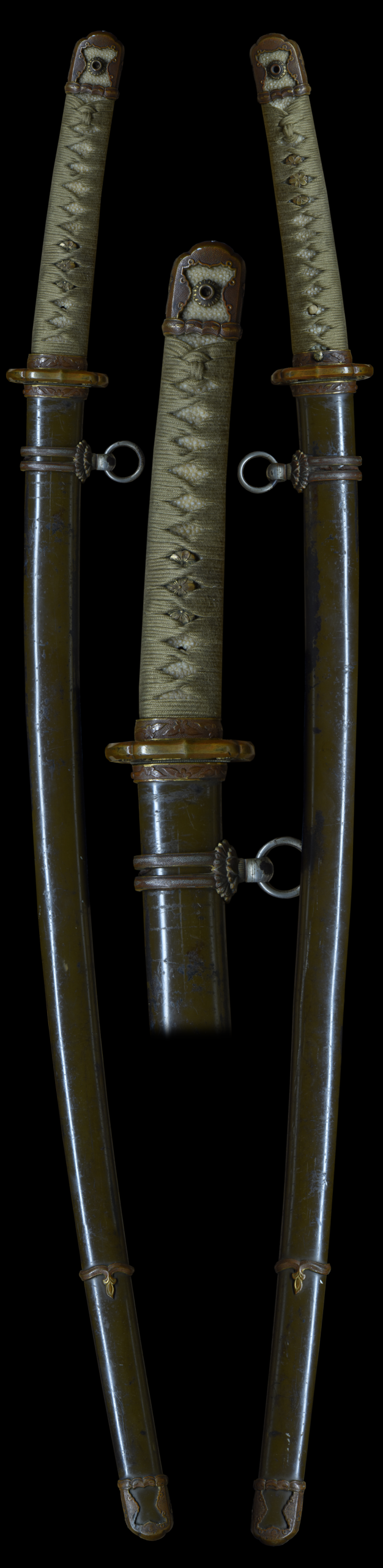 This blade combines functional design with aesthetic nuances — such as an active temper line and clearly defined grain — that demonstrate it was more than just a utilitarian wartime weapon. Its generous 26″ nagasa and traditional form make it a compelling example of WWII-era sword craftsmanship.