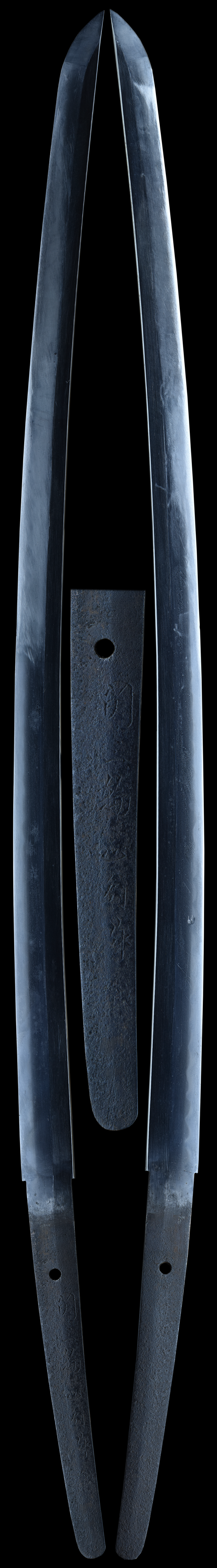 The nakago is heavily rusted, obscuring parts of the mei. What remains legible appears to read “Seki Masa… saku”, with the remaining characters difficult to discern and possibly Hide or a related reading. Due to the condition of the tang, the attribution is tentative and cannot be confirmed.