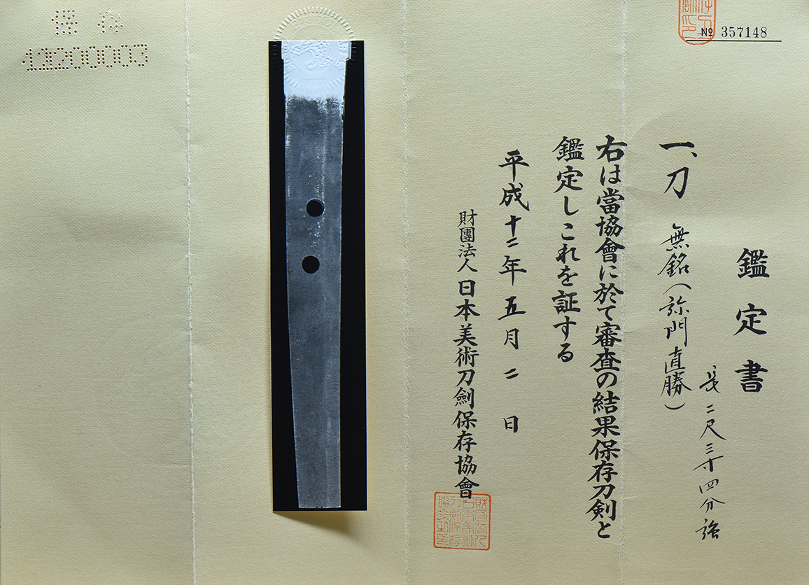As a result of examination conducted by this association, the sword at right is recognized as a Hozon Tōken