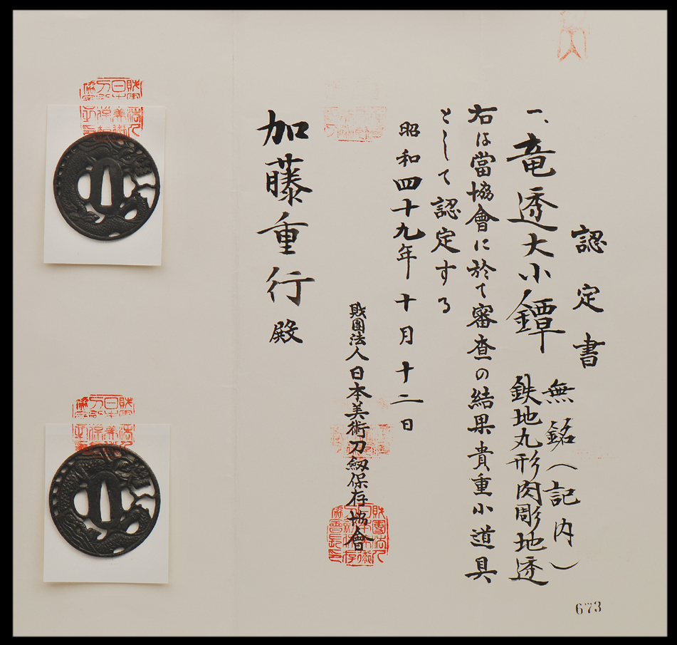 This is a kinai school daisho set of tsuba with papers.