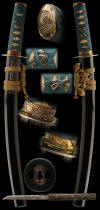 According to legend (mostly from China), the Hō-ō appears very rarely, and only to mark the beginning of a new era -- the birth of a virtuous ruler, for example. In other traditions, the Hō-ō appears only in peaceful and prosperous times (nesting, it is said, in paulownia trees), and hides itself when there is trouble. As the herald of a new age, the Hō-ō decends from heaven to earth to do good deeds, and then it returns to its celestial abode to await a new era. It is both a symbol of peace (when the bird appears) and a symbol of disharmony (when the bird disappears). In China, early artifacts show the Phoenix (female) as intimately associated with the dragon (male) -- the two are portrayed either as mortal enemies or as blissful lovers. When shown together, the two symbolize both conflict and wedded bliss, and are a common design motif even today in many parts of Asia.All in all a great koshirai waiting for a great sword. Please note we cannot except returns for fittings or koshirai.