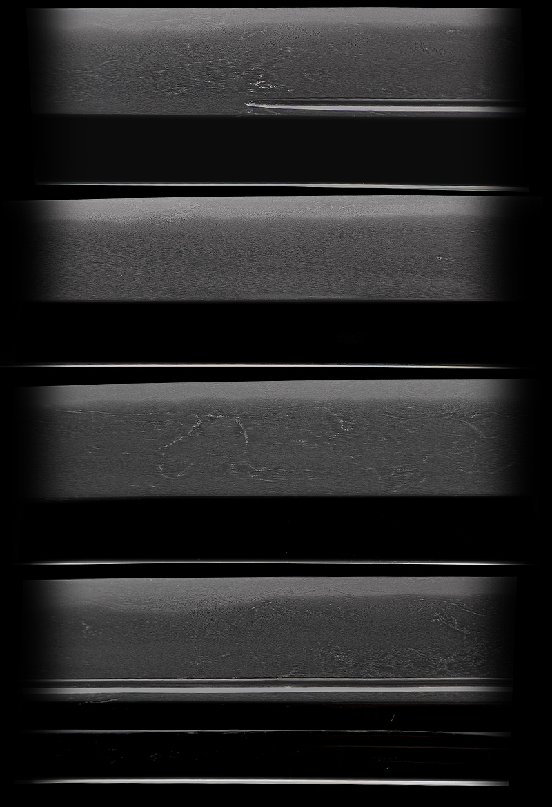 This is a very interesting Koto period nagamaki. It is in polish and has a very active ara-nie that extends into ji-nie in the hada. The hamon has many hataraki and the hada is well made with some utsuri in places. There are two course areas in the hada, overall the hada looks very tight and forged well for a sword of this age.