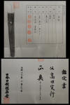 Here we have a shinto period katana with mounts. The sword's condition is very good and has no flaws. The elegant suguba is of subtle samurai taste and not flamboyant. The hada is very well made and is tightly forged. The hamon has a thick nio-guchi and ashi are visible. This is a fine example of a samurai sword from the shinto era. It would be a good idea to submit this sword to shinsa in the future.