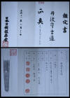 This Yoshimichi comes with a new solid silver habaki, a new shirasaya, koshirai with a tsunagi, two bags and is in an excellent polish with papers.