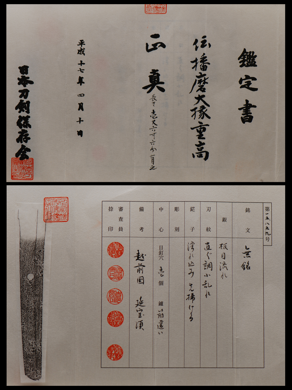 Signature: ECHIZEN JÛ HARIMA NO DAIJÔ FUJIWARA SHIGETAKA
