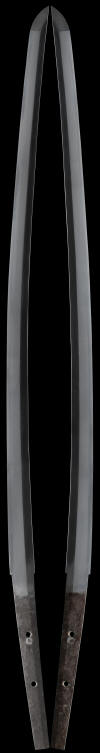 This sword is mounted for iaido training and has a newly made saya and a handle that is in great condition for training. The hamon is thick and well made and the hada is tightly forged. The work on this old sword is elegant and not flashy.