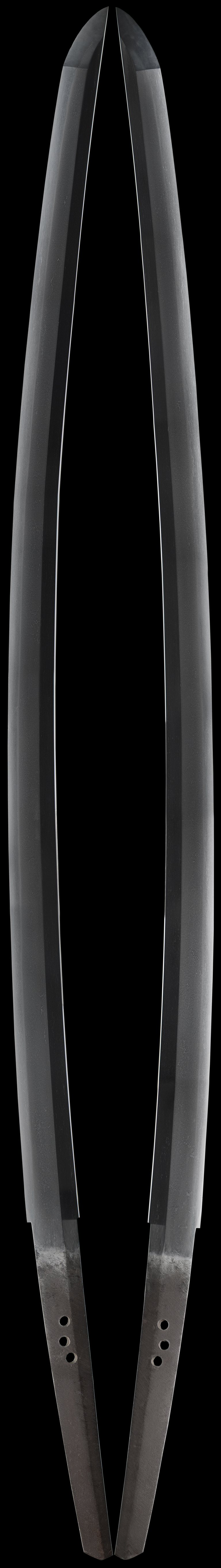 This long katana has a very strong look to it and is very stout. The shape is elegant and the blade is wide. The suguba hamon and the subdued ko-itame hada make this sword very elegant looking and not flashy, typical of Japanese taste. The hada is very well forged and is milky looking. Hataraki are found on in the hamon. This sword would be nice to send thru shinsa some day but can be appreciated as is or can make for a fine quality Iaido katana.