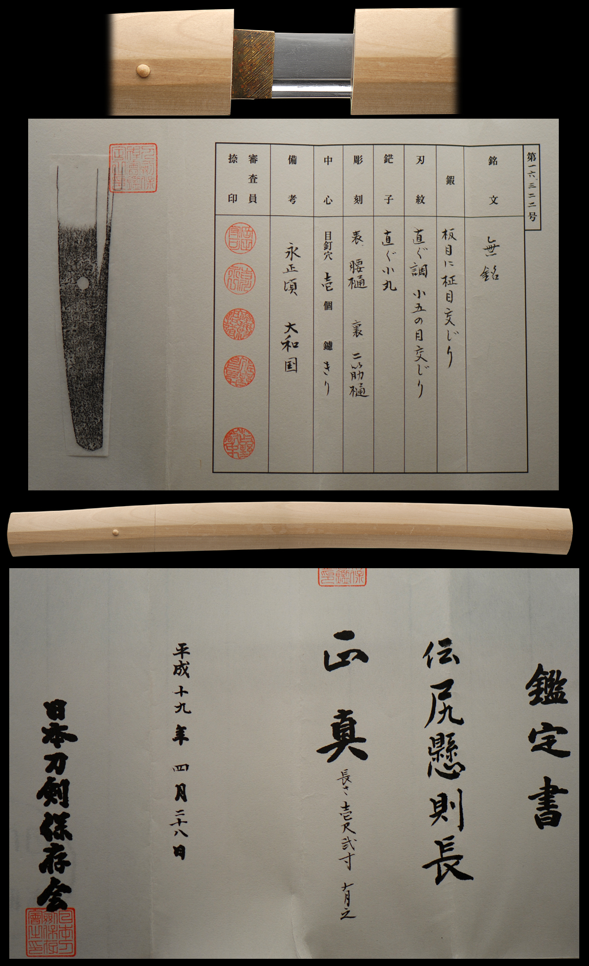 This yamato school blade is well made and shows the type of activity that is expected to be seen in good Shikake blades. Yamato is one of the five main line schools of sword making (Mino, Bizen, Yamato, Yamashiso and Shoshu). The hada is very nicely forged and the hamon has good activity. Overall this is a good Yamato blade for a collector interested in the main line schools of sword making.