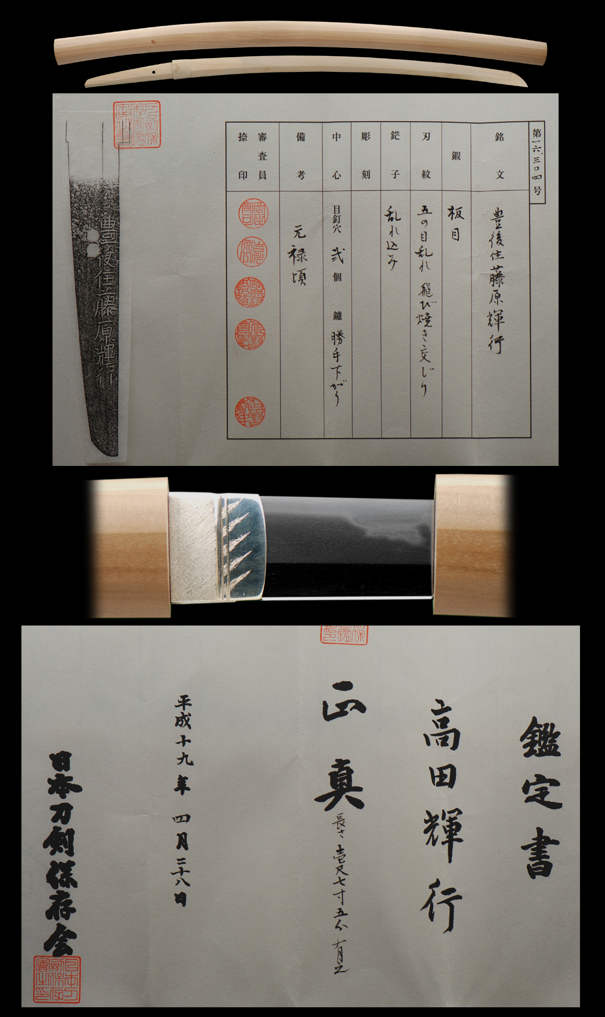 Sword comes in fresh polish, shirasaya with mounts and papers attesting to quality.