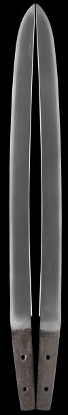 This is a very nice quality koto wakazashi. Note the tsuba depression left on the nakago from all the years of being carried. This is a very interesting sword in that is is flat sided or hira-zukuri style. The sword has no visible flaws to take away from the value and is in very good shape. The hada is very active and beautiful as were many older swords. The hamon or temper line is a subdued suguba with activity (hataraki) in it. This sword should do very well if submitted for shinsa in the future.