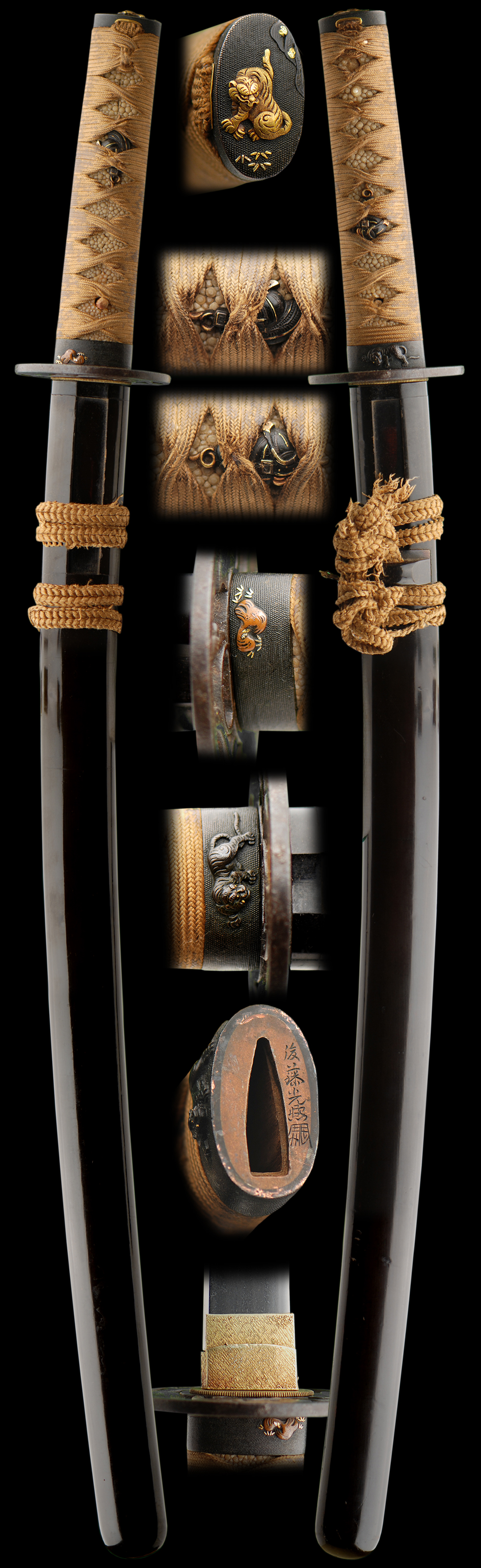 the original mounts are very fine and the are also signed. The scabbard is in good shape for its age and is not split.