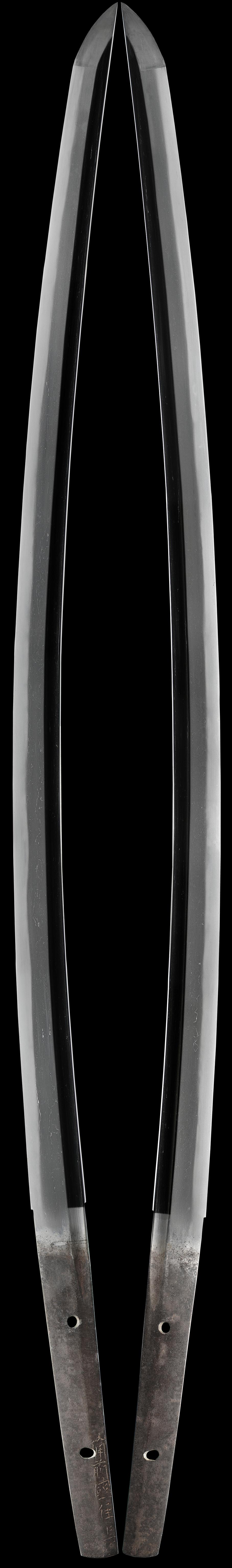 With Norimitsu, there are few blades with zokumei even with custom works. As for the determination that it is a custom blade, this can be determined at a glance from the superior workmanship. This is clear even with the nakago. This is due to the fact that because the nakago steel is good there is no erosion, and the signature kanji are beautiful without even a bit of roughness. Once in a great while, around Eishô, he signed the zokumei of Shirôzaemonnojô and Shinzaemonnojô.