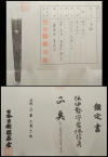 This sword comes in fresh polish and in shirasaya. The mounts have a wooden tsunagi and both the sword and mounts have NTHK papers attesting to age and quality.