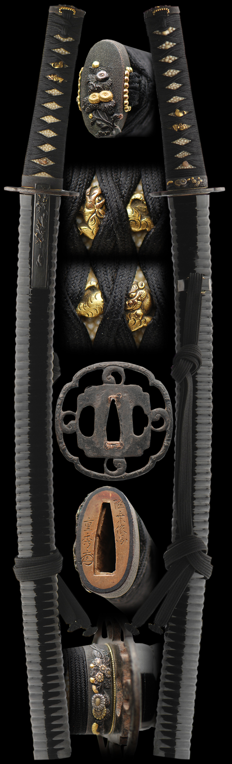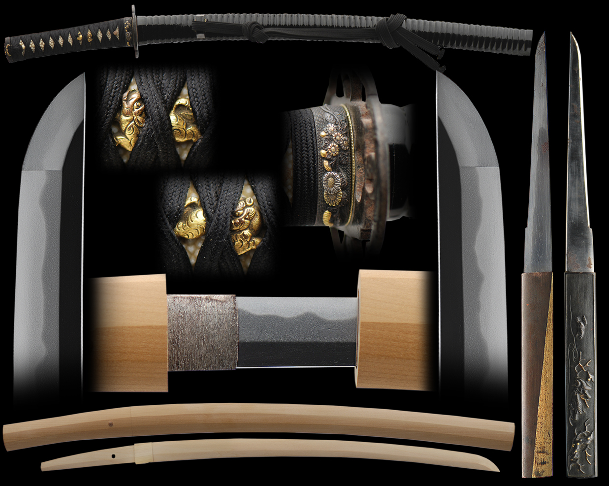 These mounts are beautiful and of high quality, from the saya to the fittings. The fuchi/kashira have a good signature and the quality is to be noted. Please have a look.