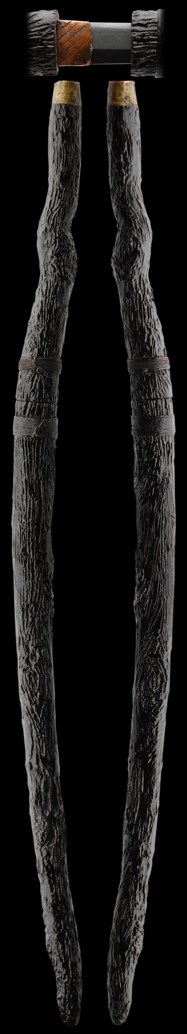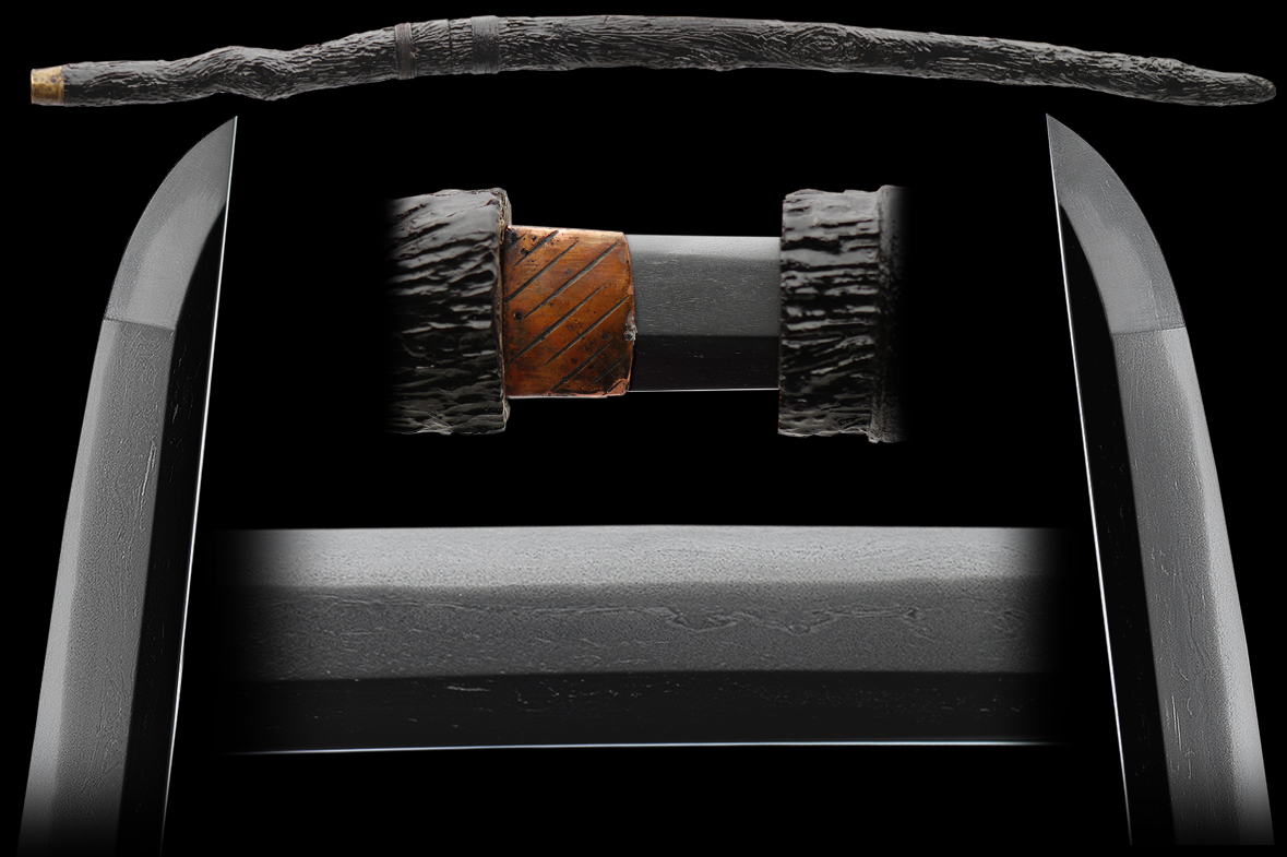 This a very interesting Japanese cane with a hidden sword inside. This cane was made to resemble a tree limb. Overall the condition of the mounts is very good and has some minor restoration that is hardly noticeable. The blade is clean and in good shape. This sword is fully signed but hard to make out, so the quality of this unique sword is good.