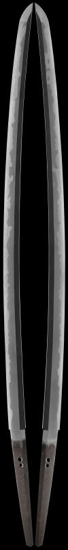 Nakago: Two mekugi ana, yasurime is sujikai