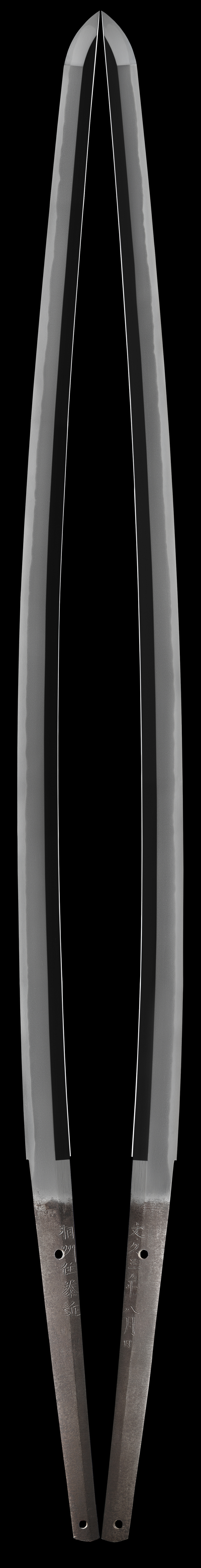Nakago: Two mekugi ana, yasurime is kiri