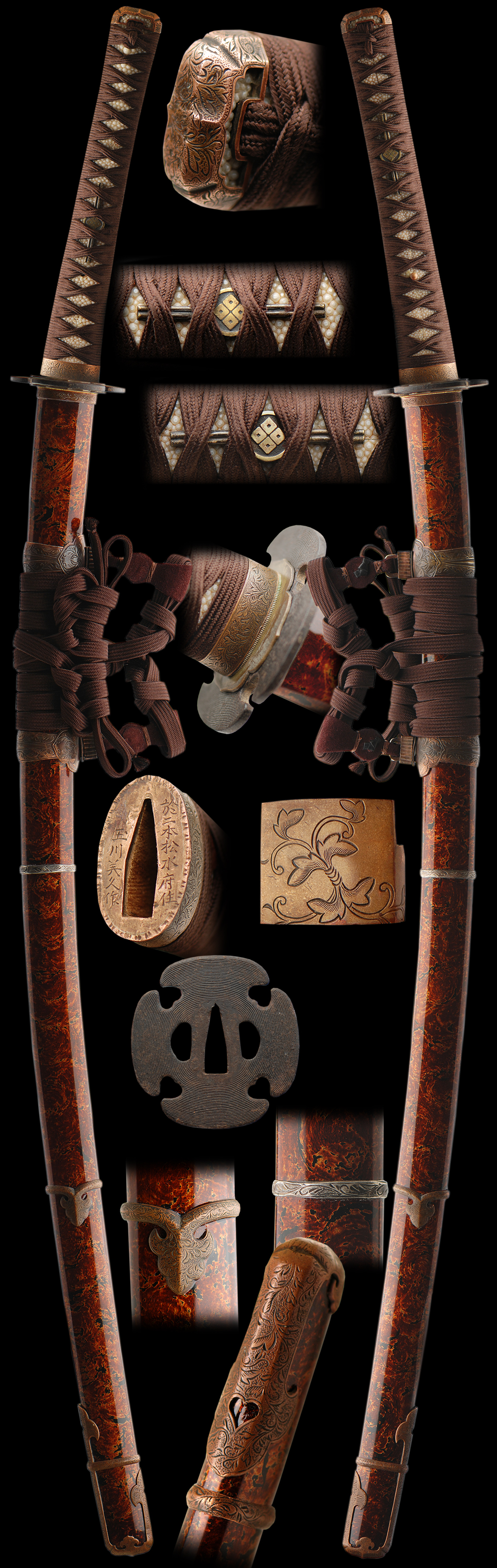 These mounts are signed and the saya was restored to the original finish. This sword with mounts would be a fine display item for any collector interested in owning a Tachi koshirai.
