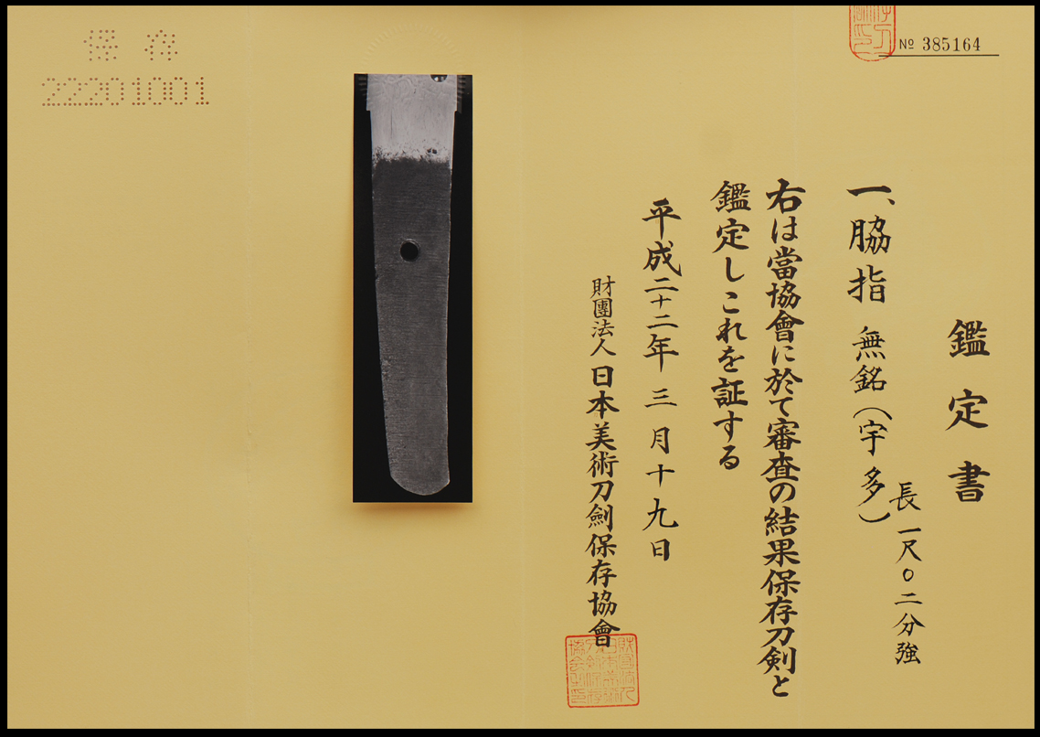 As a result of a shinsa at this organization, the above item has been designated a Hozon Token, and is confirmed as authentic.