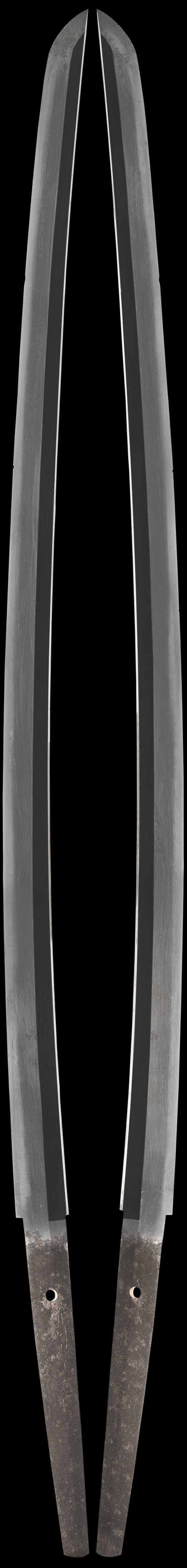 Its very difficult to know if the signature is correct because of the condition of the sword. This sword should be polished and fully restored. The sword should polish out fine. The hamon is visible and not damaged or missing. The mounts are very nice quality and original to the blade. This is a sound reasonably priced katana from the 1500's and in need of restoration. This is a good starter sword for a new collector.