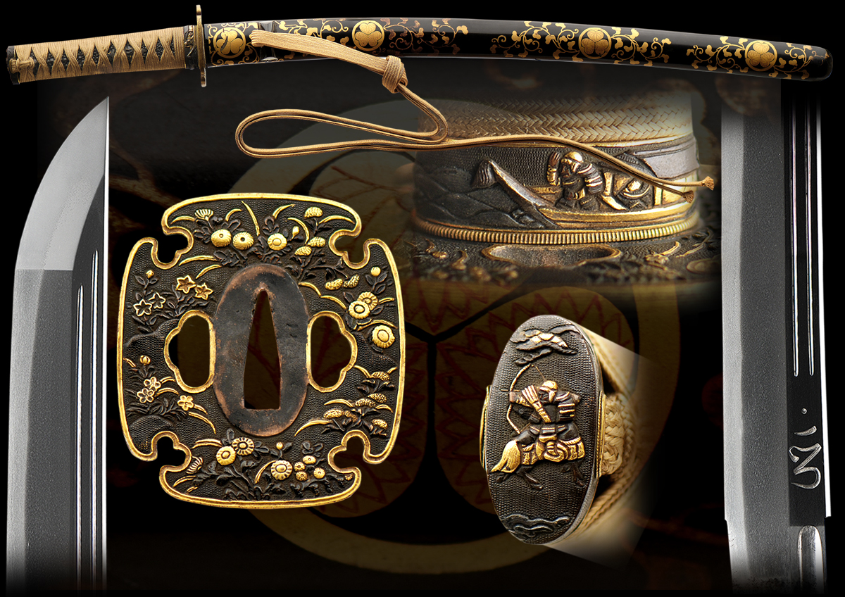 There were three Kanehiro from Hizen. The work on this sword appears to be from the first generation but it's impossible to be sure. The sword is very beautiful in shape and style. The hada is well forged and rich looking. The hamon has fine quality hartaraki and this sword has very interesting mounts with Tokugawa mon in the lacquer work.