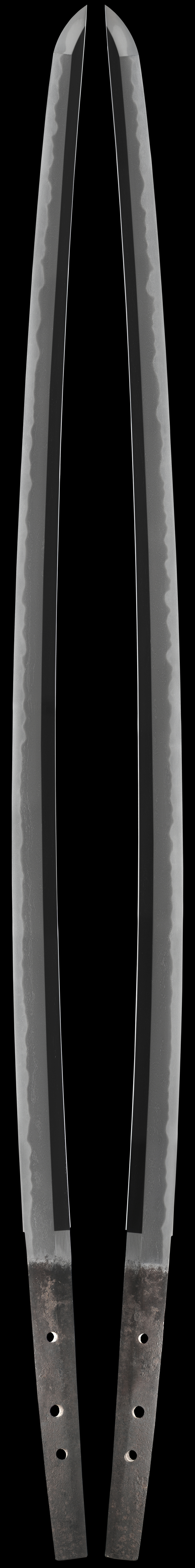 Echizen seki was an area that produced many swords. Seki blades were famous for cutting very well. There were many smiths working in the area and this sword was papered to that school of sword making. This sword has some course and active hada and is forged well. The hamon has good activity and is in a gunome style. The overall shape of this sword is elegant and is a very fine example of an shinto era katana.