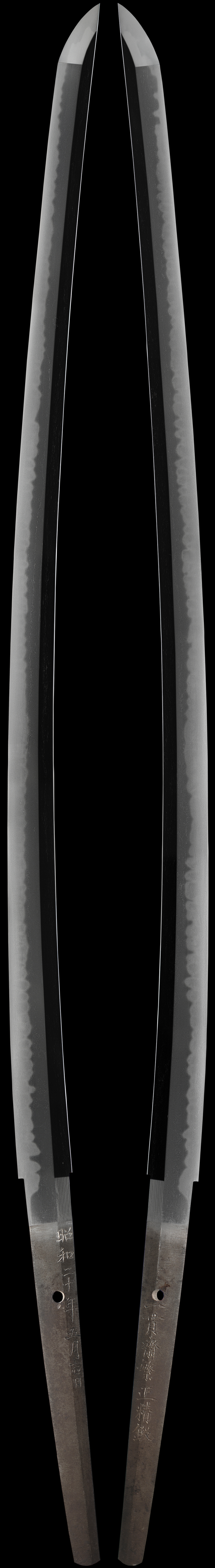 IKKANSAI SHIGEMASA was born in 1905 in Shizoka Prefecture. He worked in Tokyo, was in the KASAMA SHIGETSUGU Mon. He was a Rikugun Jumyo Tosho, or army commissioned smith. His blades have nenki from at least Showa 29 (1954) to Showa 45 (1970). Miyaguchi Toshihiro and Tsukamoto Okimasa were in the same Mon. Miyaguchi Toshihiro was his cousin. Shigemasa later change his mei to Shigemasa using the 政 jj instead of 正.