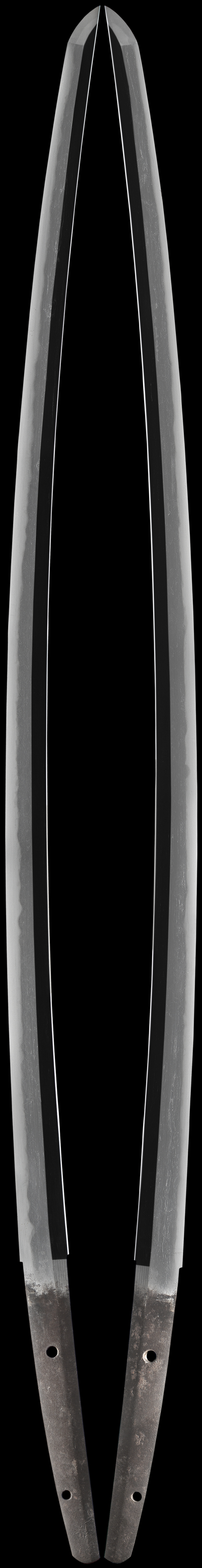 This is an early daito from the late koto era. It has not been submitted to shinsa because it has come out of a local vets home so we can not verify authenticity of signature. We can however say that the sword is from the koto era 1400-1500. There were a few smiths that used this name on there swords from that era. The sword shows course hada like that in the uda school and some later yamato work. The hamon has good hataraki and is well made. This sword comes in original samurai mounts that are not meant to be flashy but are more in the subtle samurai style.