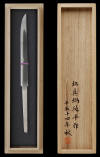 MANABE SUMIHIRA made this rather large Ko-Katana in HEISEIJUYONEN AKI (Fall of 2002). The quality is very high on this blade. It should be noted that this is one of the few smiths that actually produces his own steel for making his swords. Therefore his swords are unique from the average smith that purchases tamahgane to make there swords. This ko-katana comes in a signed box by the smith himself.