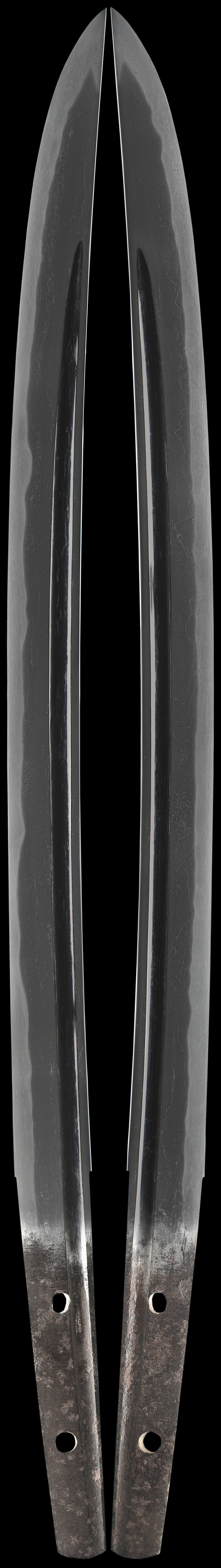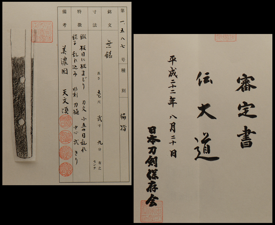 This interesting hirazukuri blade comes in polish with original koshirai and shirasaya and is accompanied with NTHK papers.