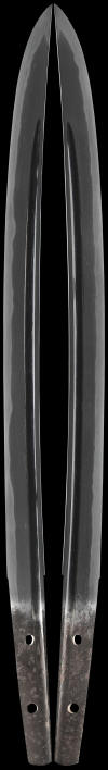 This wakazashi is from the muromachi era and is a fine quality sword with a very good shape and style. The hada is course in places and is well forged. The hamon is very active and rich with ashi and other hataraki. The hori is in the Bo-hi style and well cut. The mounts have age to them also and are very good. The handle even has its old tsukamaki in good condition considering its age. The saya has some wear but is not broken or split. This early blade is very sound for its age and is in a good polish.