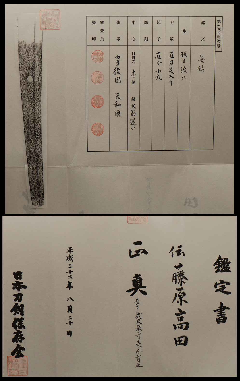 This fine sword comes polished with shirasaya and tsunagi for koshirai and is accompanied with papers attesting to school and quality.