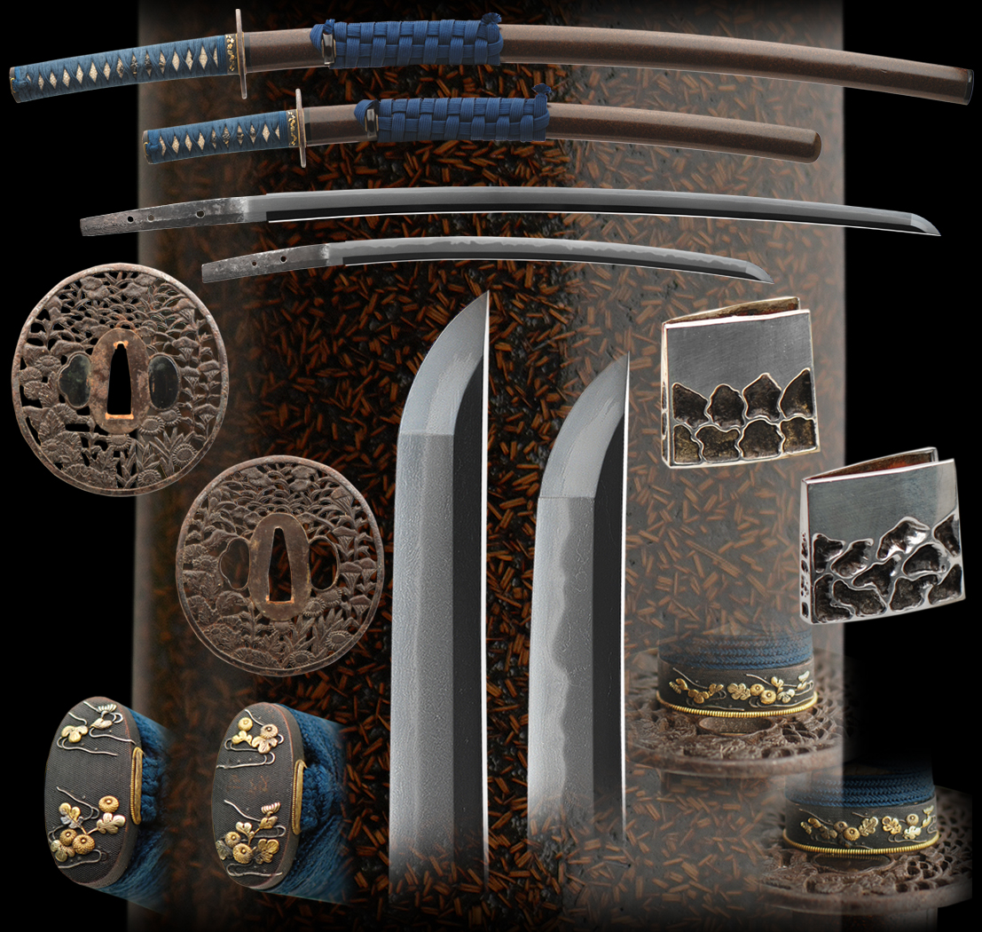 This is a very fine looking daisho. The katana is in yamato style and the wakazashi in in bizen style. As in most daisho the wakazashi is flashy next to the katana. The swords are both well made and the mounts all in match superbly together making for a true daisho or set. The pictures show the quality of the blades and mounts.
