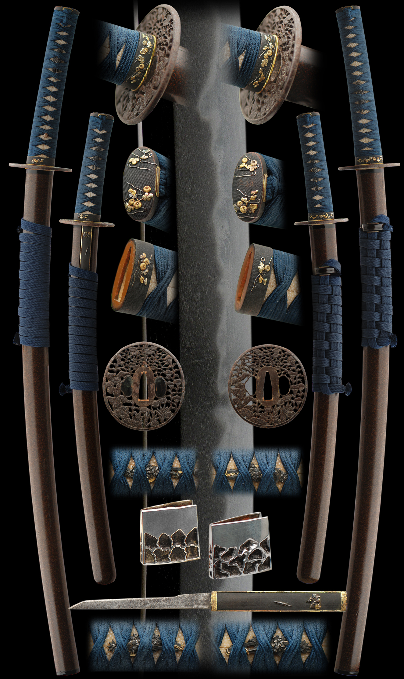 These mounts are very elegant and the saya are in excellent condition for their age.