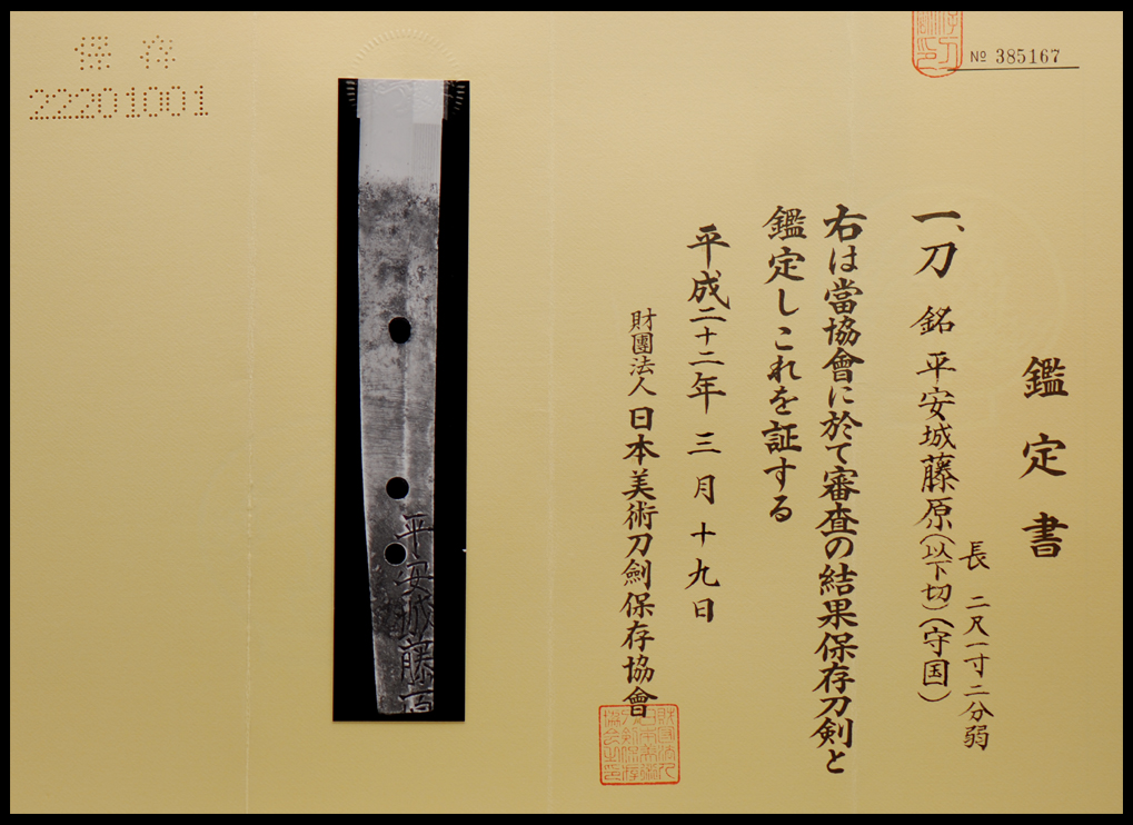 As a result of a shinsa at this organization, the above item has been designated a Hozon Token, and is confirmed as authentic.