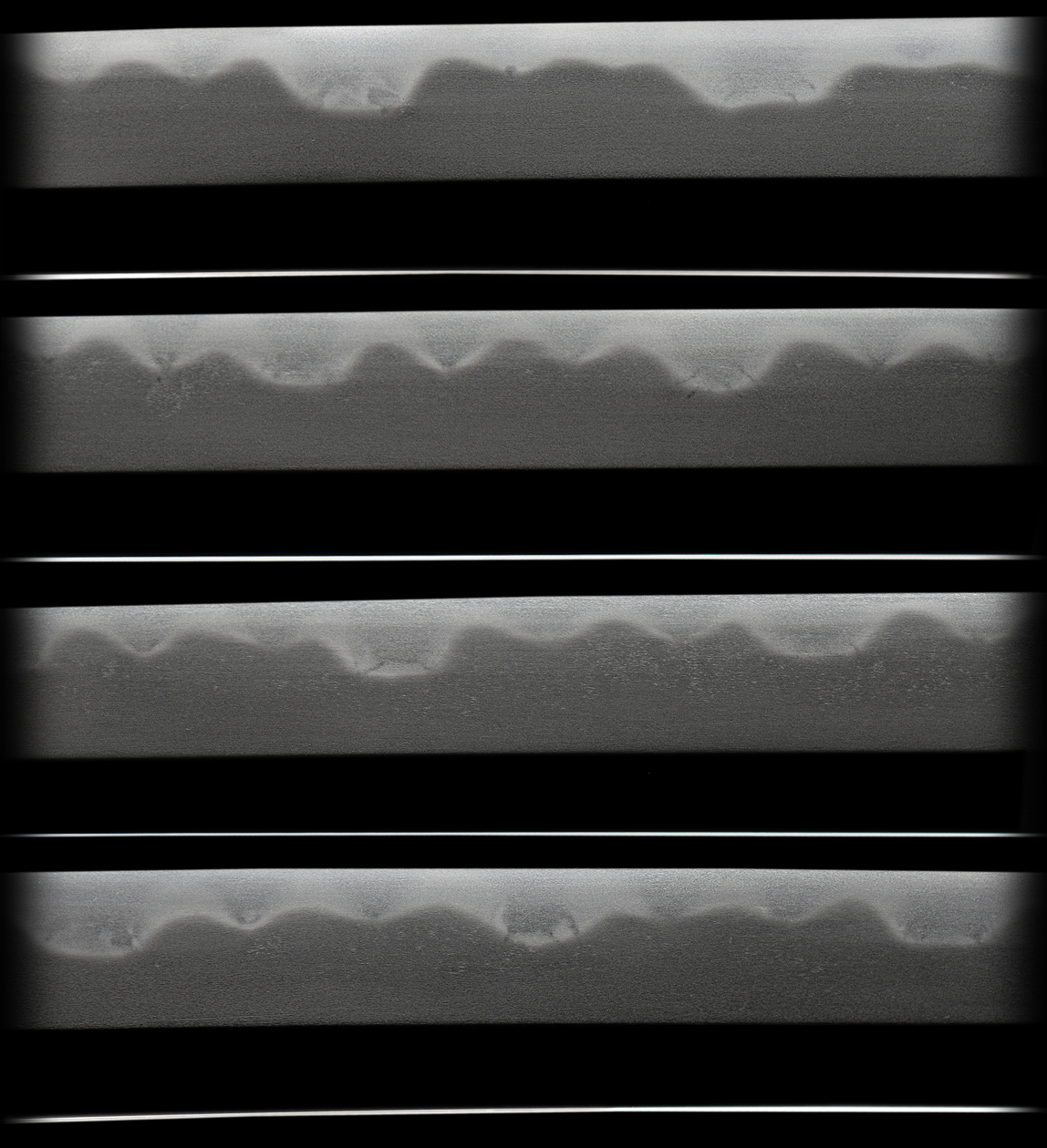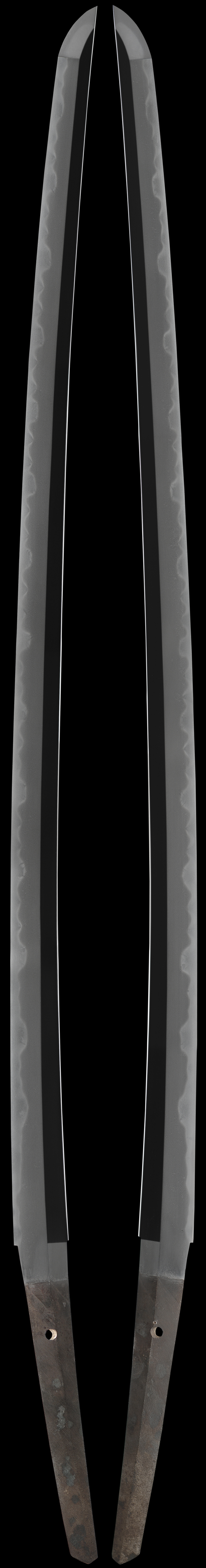 This long katana looks like a shin-shinto blade. Its difficult to say because it is very healthy and hearty in construction. The blade is hand made and forged in the traditional manor. The hamon is well made with good hataraki/activity. The hada is very tightly forged and is itame style. This katana is very strong and would make for a good iai blade and even for tameshi-giri. The saya is new and made well for training if necessary.