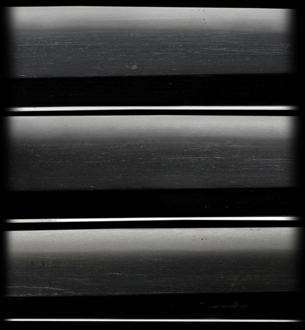 kan 850This is a hand forged katana made in the traditional fashion. It was made by Noshu Kanehide. The sword is in an old polish with stains but would be beautiful in a fresh polish some day. The hamon is made up of mostly nioi with some nie mixed in. The hada is very tight and has no flaws. The sword has no handle and after a polish it would be a great idea to put in shirasaya. This is a good example of a gendaito made by Kanehide.