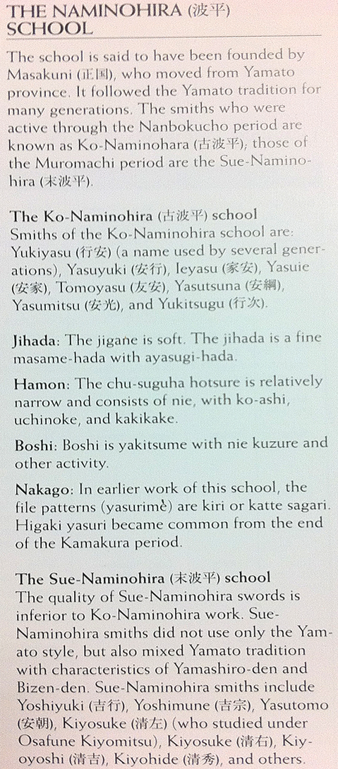 This is a very fine and very early example of a Nami no Hira katana that dates back to the 1300's. The condition of this exquisite old koto sword is excellent and the sword is still very tightly forged for its age. The hamon is very bright and healthy. Yamato school swords are very desirable and are one of the finest sword produced during the history of sword making. The hada on this sword is very smooth. This itame hada has a beautiful rich texture and appearance. Its very hard to believe the condition of this fine sword for it's age. This sword is also in very good honest samurai mounts that are in excellent condition. Swords of this caliber in this condition are not always available for sale at reasonable prices, but this sword is in our opinion.