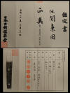 The Sho-to was attributed to Den Kanekuni of the koto period. An O-suriage piece this sword has a hamon based in sugu-ha but midare-ba throughout. The hada is an itame nagare with ji-nie.