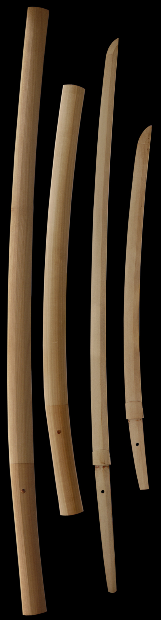 Both swords are mounted in shirasaya to protect the polish and the koshirae have tsunagi.