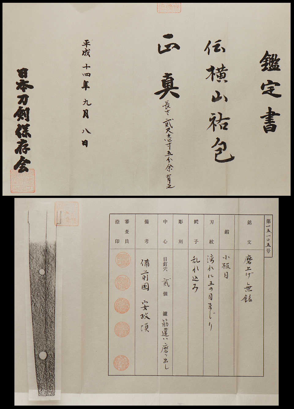 Yokoyama Sukekane was the adopted son of Yokoyama Sukemori, and was trained by the famous Yokoyama Sukenaga of the Shinshinto Bizen School. Sukenaga inscribed on the tang of his swords � Tomonari GojoRoku-Dai Mago� meaning that he was the 56th generation descendent of the Tomonari Bizen tradition. Sukekane also followed in this tradition by inscribing he was the 58th generation of that line.