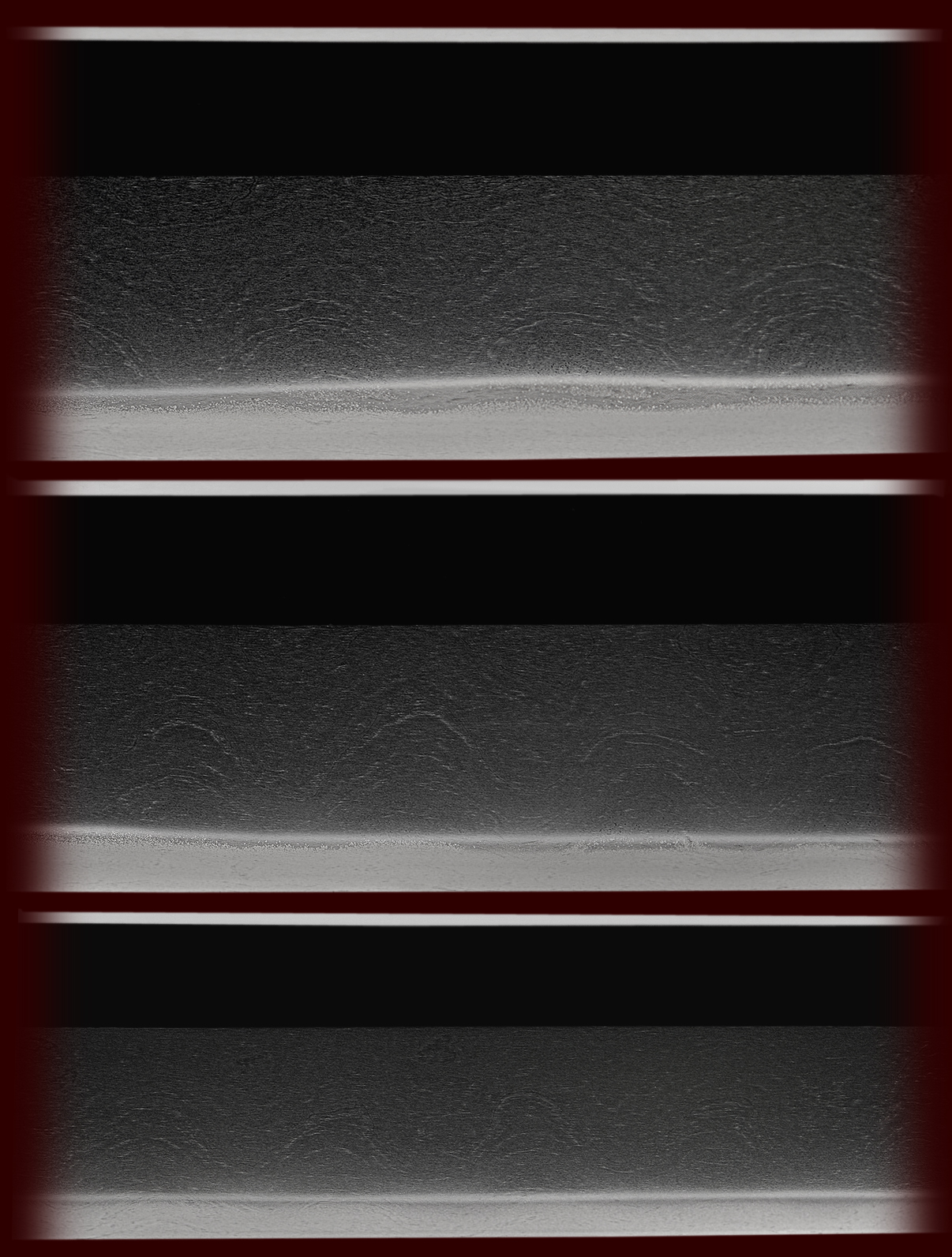 Gassan 月山 is the name of a mountain in Ushu (the second character is the kanji for mountain), and this gives the old Gassan school of the koto period its name. The Gassan smiths made swords in a remarkable style in which the jihada appears as a series of rolling waves, called ayasugi hada. It is breathtakingly beautiful and is considered the key kantei point in identifying works of this school.
