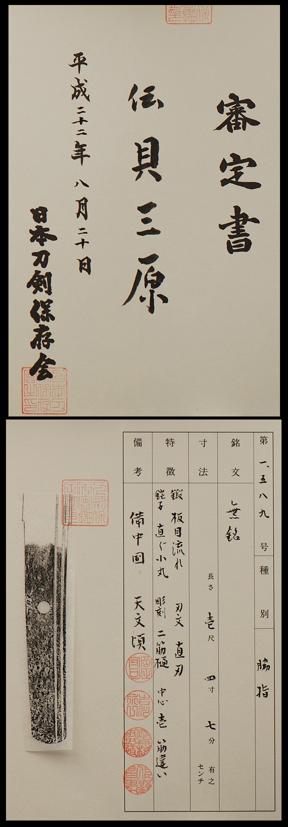 Mihara school had been prospered from late Kamakura to late Muromachi period in Bingo province present Okayama prefecture. The representative swordsmiths were Masaie and Masahiro. Especially the works of last Kamakura period to Namboku-cho period are called Ko-Mihara, and are distinguished from the later period.