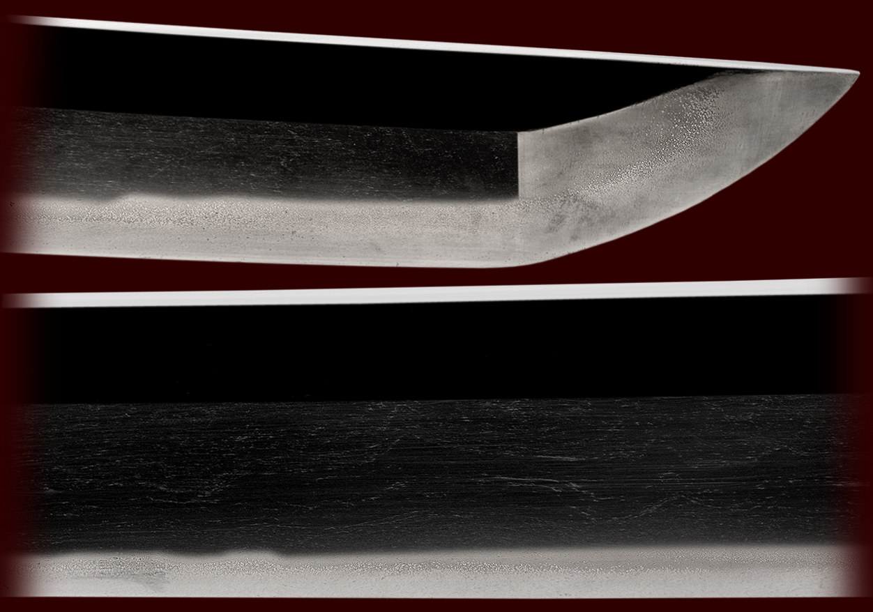 We have here a fine example of a traditionally made sword from the war era. Unique in its size at 28 �� this blade has all the attributes of a true gendaito. The hamon is a brilliant sugu-ha with kuichigaiba. Ko-nie appears frosting the boshi and hamon. The hada is an itame mokume mix and masame appears.