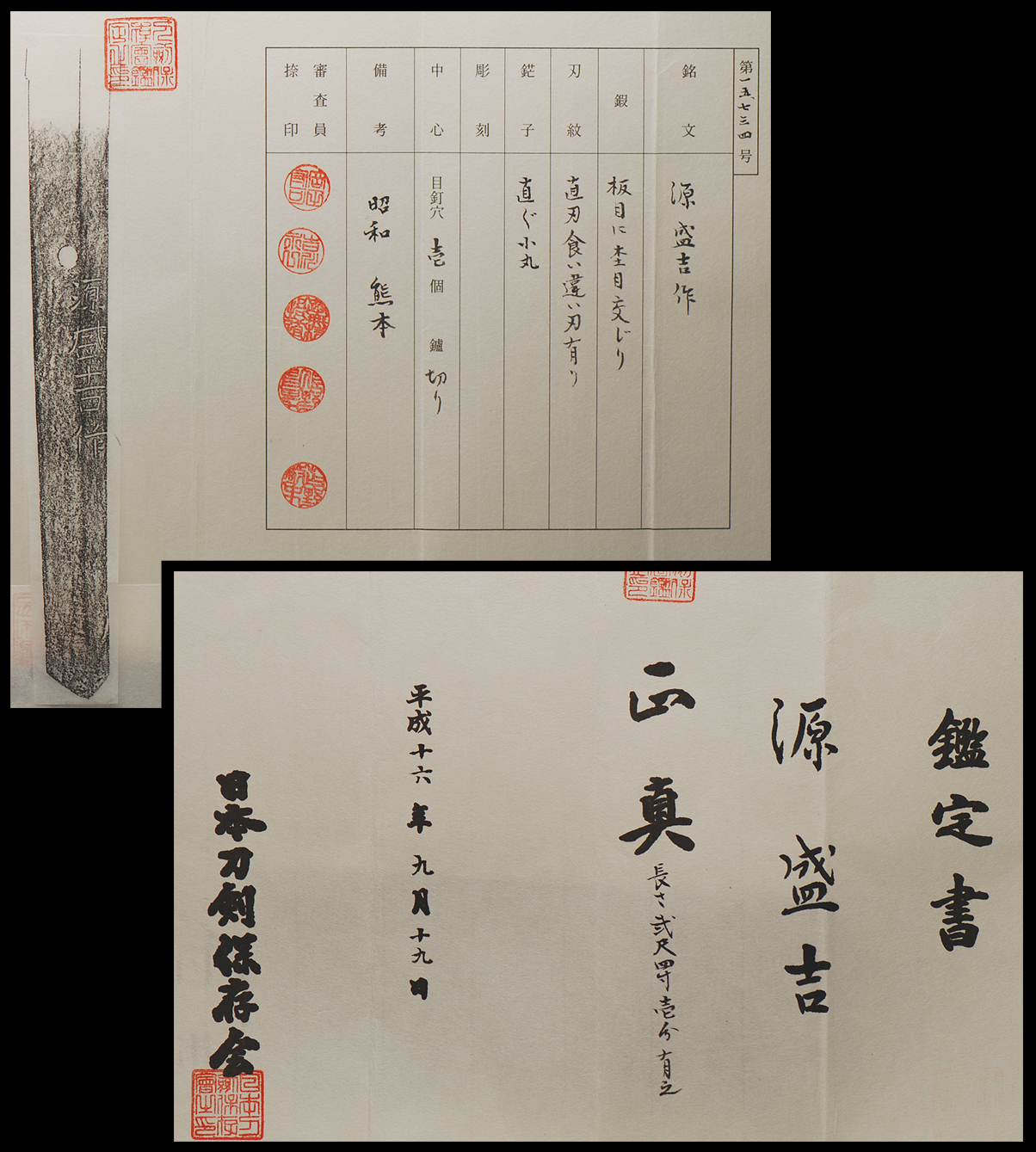 A rare treat that the sword is papered and a testament to the validity and authenticity of the blade. The blade is signed by MINAMOTO MORIYOSHI SAKU.