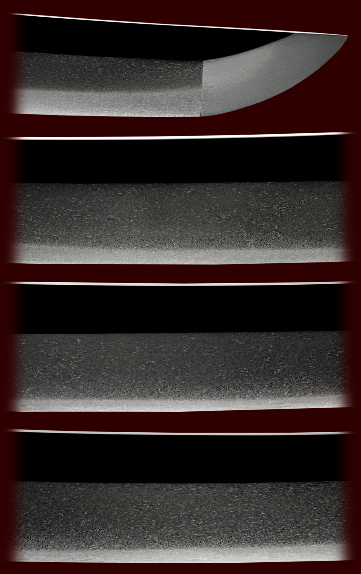 The blade itself is a masterful sugu-ha, just peppered with ara-nie and small activities throughout emulating the great old mino blades of past. The hada is so fine and well worked of ko-itame with mokume. It is covered in ji-nie and has an oily appearance that is found in the best of blades. A rare package!!