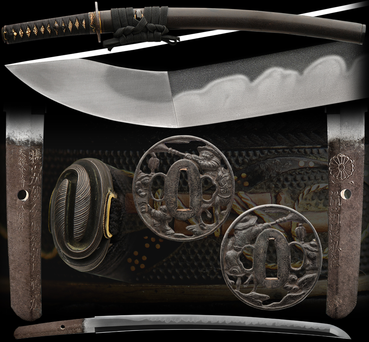 The sword is signed: � Kiku Ichi Bizen Osafune Ju Yokoyama kaga no suke Fujiwara ason Suke Naga �;