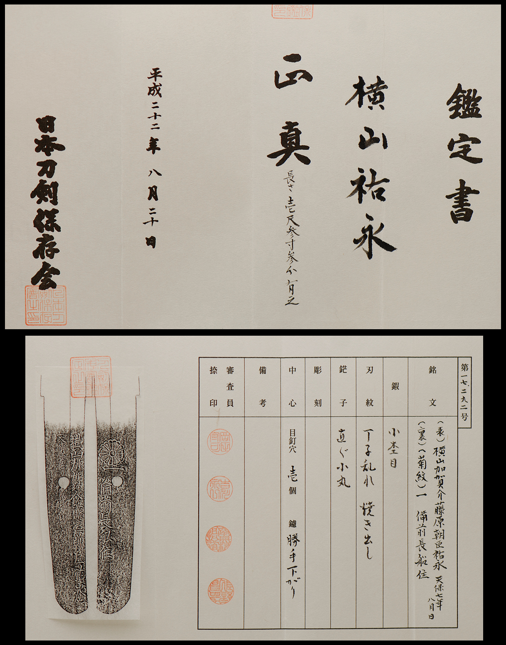 Signatures: YOKOYAMA KAGA NO SUKE FUJIWARA SUKENAGA