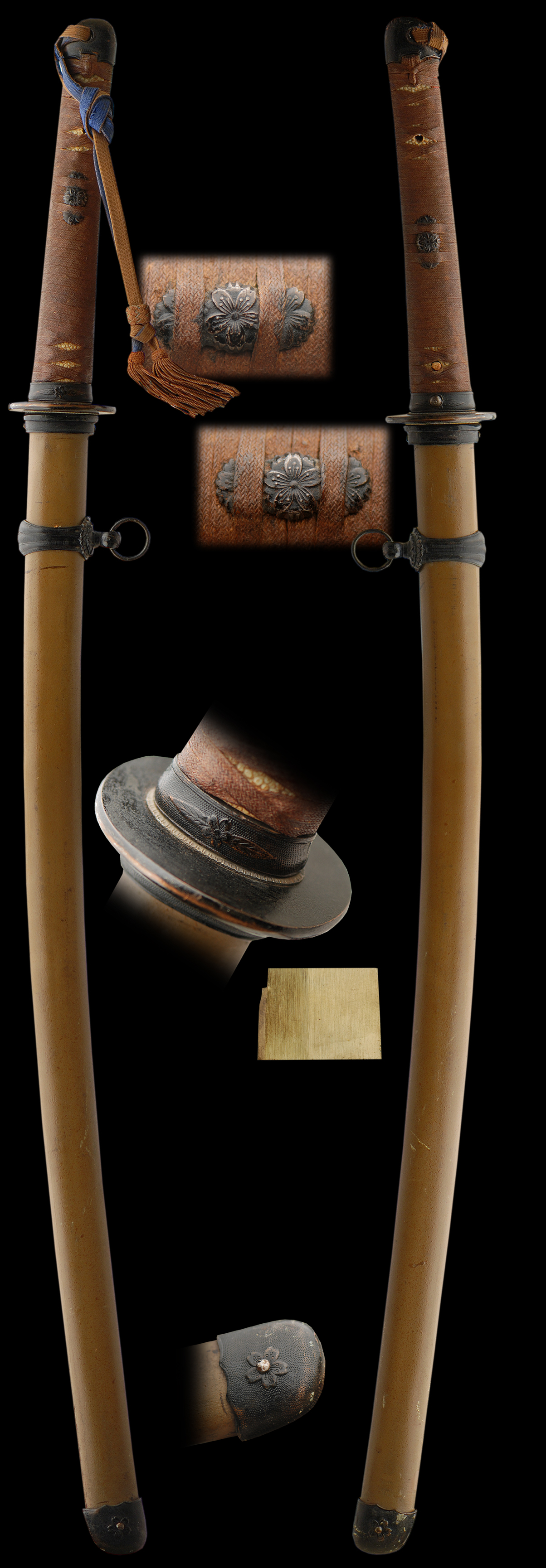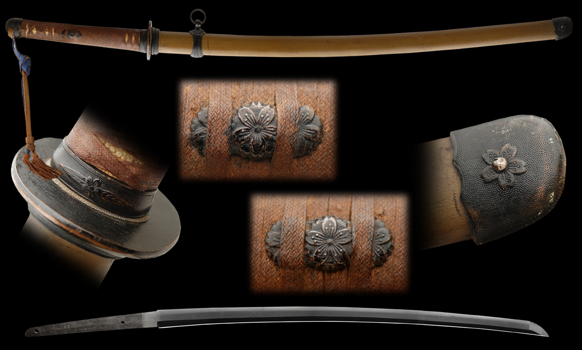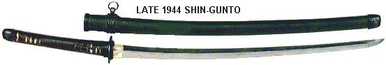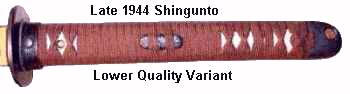 The other variation of the late 1944 swords has either a light brown or a tan iron scabbard and light brown or green wrapping (ito) over cloth.